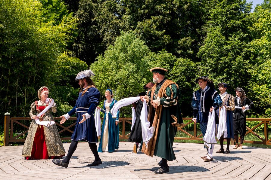 Die Tänzerinnen und Tänzer des "Augsburger Geschlechtertanz e.V." haben diesen Tanz aus Saltarello und Piva Schrittkombinationen speziell für die Stadt Augsburg, die ihren Reichtum unter anderem auf die Leinenweberei begründete, eingeübt und erstmalig zum Renaissancefest 2016 im Botanischen Garten der Öffentlichkeit präsentiert.